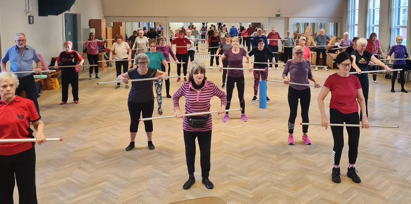 Perjantaiaamuisin on tarjolla kuntoiluharjoitus niille, jotka etsivät kevyempää treeniä. Kevyemmässä jumppatuokiossakin keho saa monipuolista harjoitusta ja kehonhuoltoa.